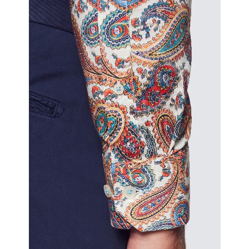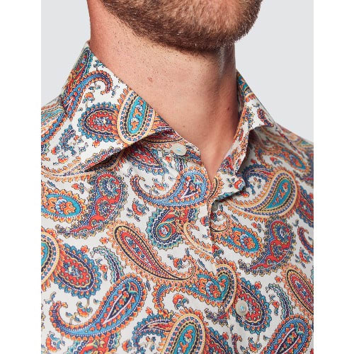 Buy Men's Curtis Large Paisley Relaxed Slim Shirt - Cream & Red in Nigeria