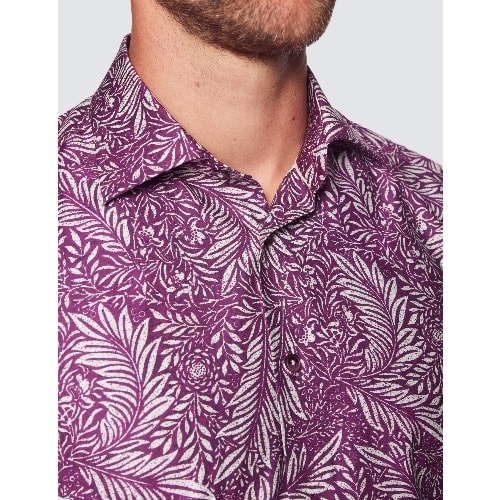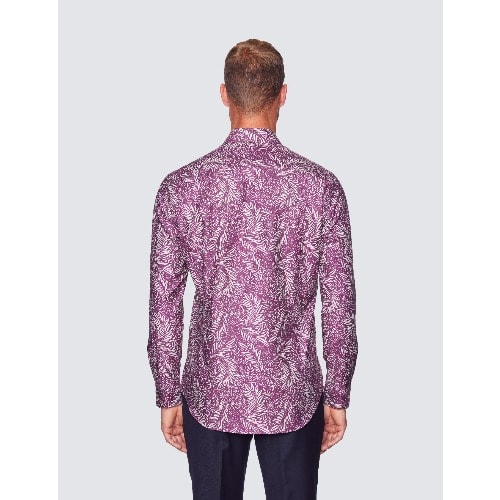 Buy Men's Curtis Leaf Print Relaxed Slim Fit Shirt - Low Collar - Purple & Cream in Nigeria