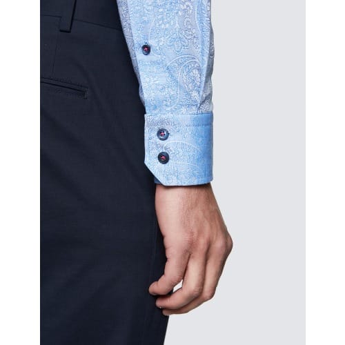 Buy Men's Curtis Light Blue Paisley Print Shirt - Low Collar in Nigeria