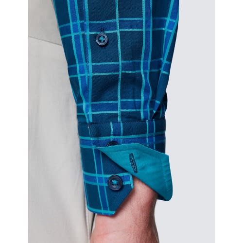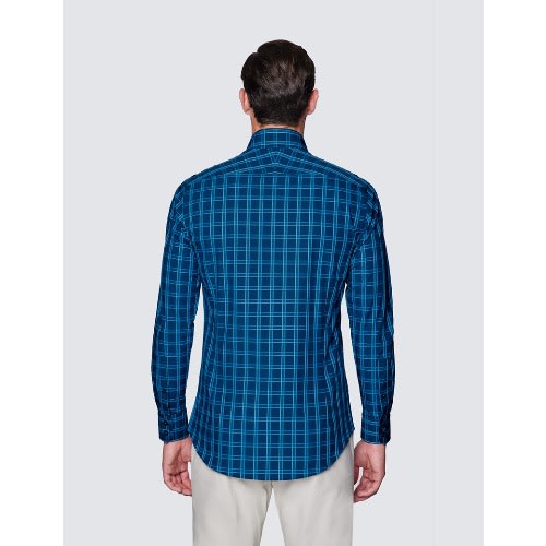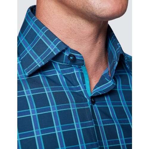 Buy Men's Curtis Navy & Turquoise Check Piccadilly Slim Fit Shirt - Low Collar in Nigeria