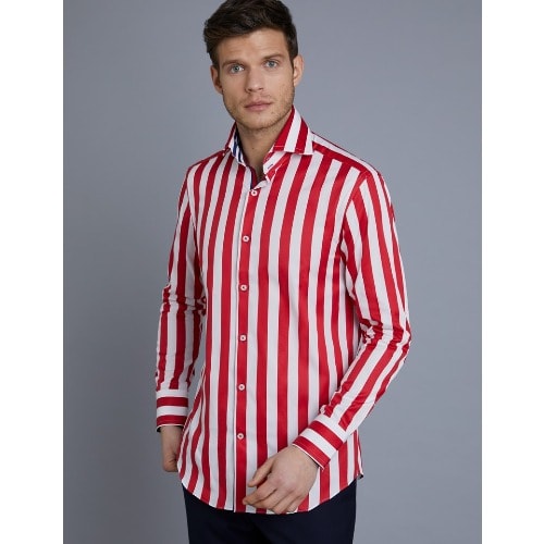 Buy Men's Curtis Red & White Bold Stripe Slim Fit Shirt - High Collar - Single Cuff in Nigeria