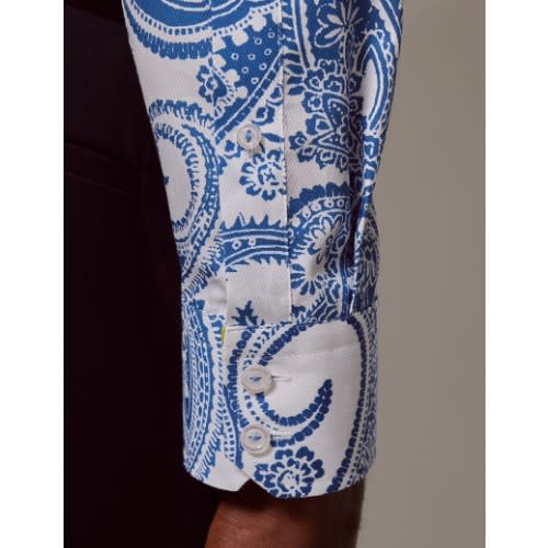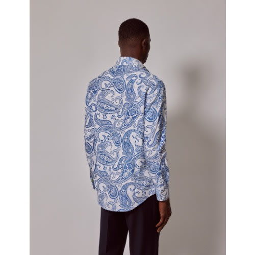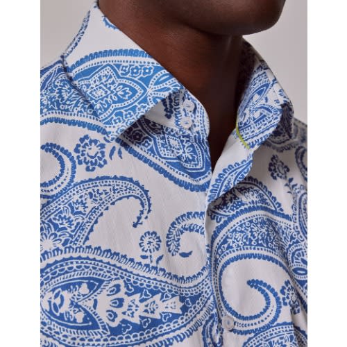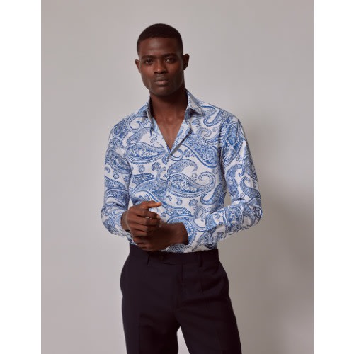 Buy Men's Curtis White & Blue Large Paisley Slim Diamond Weave Shirt - Mid-collar in Nigeria