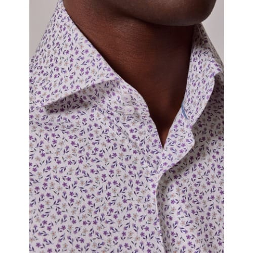 Buy Men's Curtis White & Purple Floral Slim Diamond Weave Shirt in Nigeria