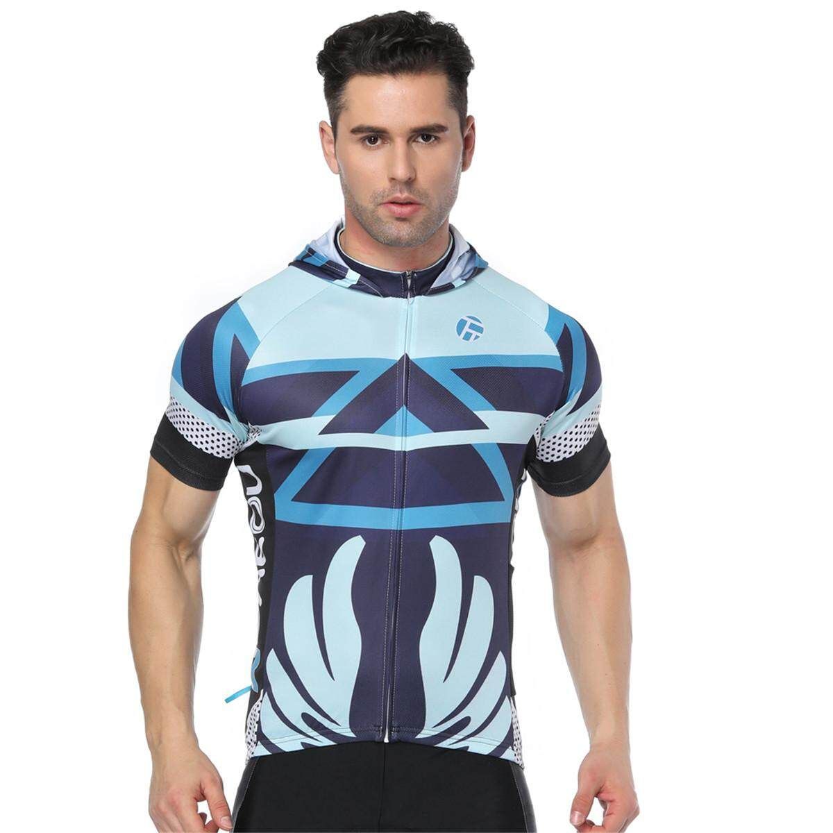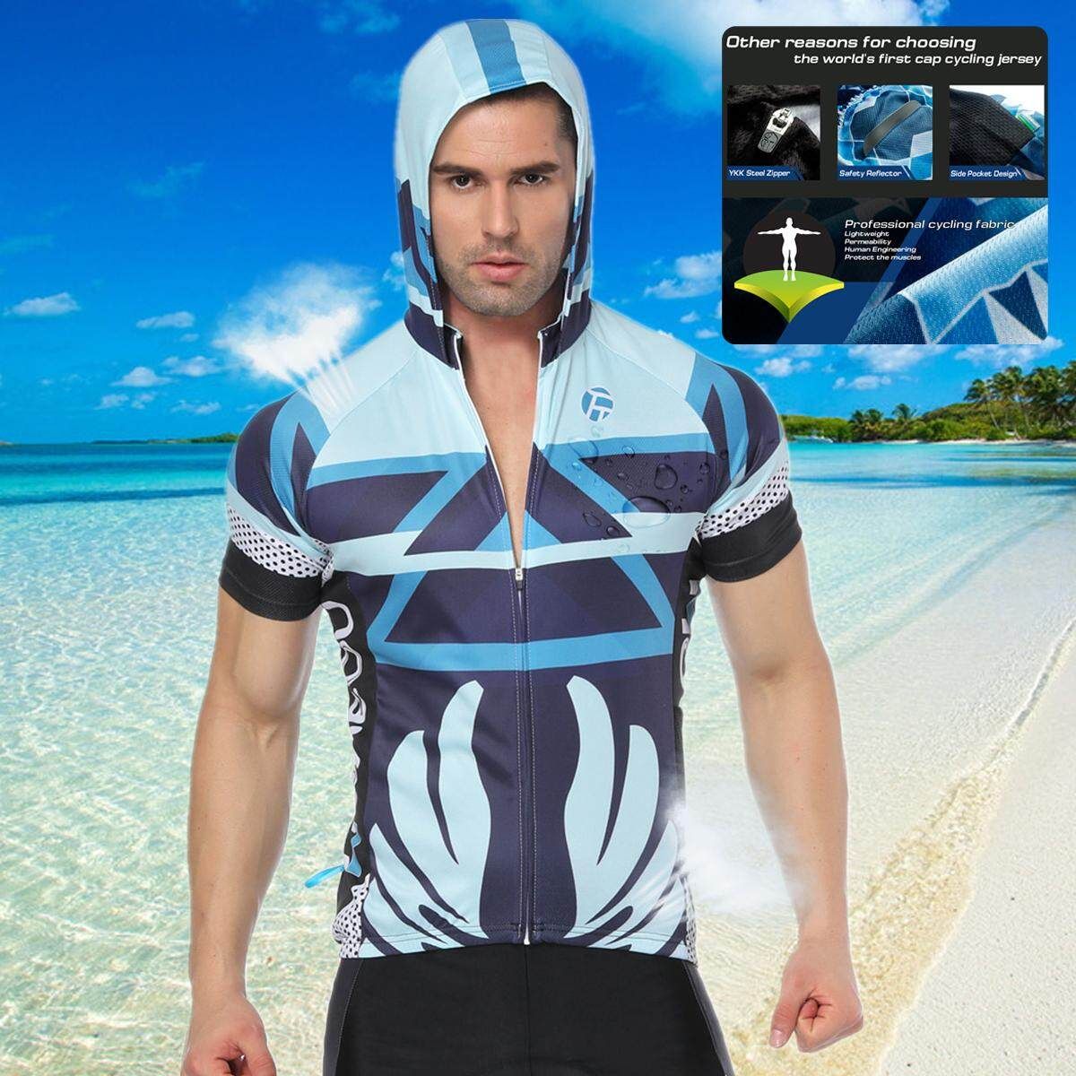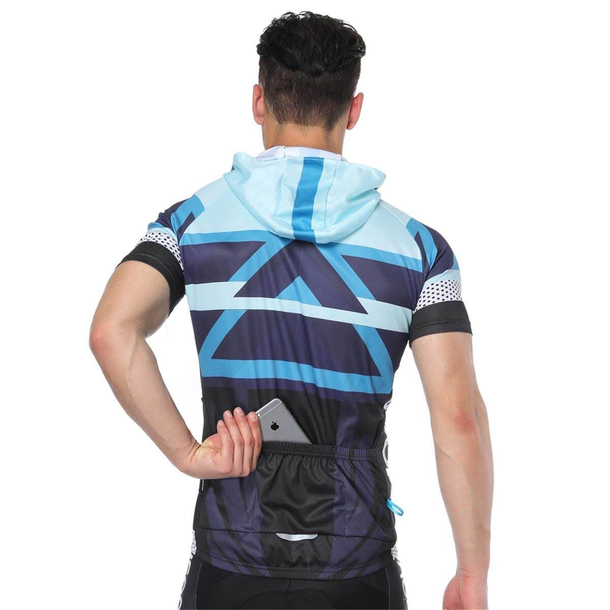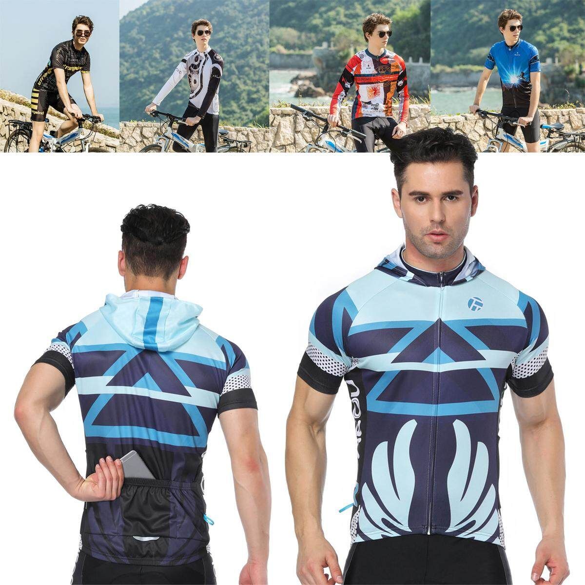 -Men‘s Cycling Clothing Bicycle Jersey Sportswear Short Sleeve Mtb Bike Top Shirt(with hood).