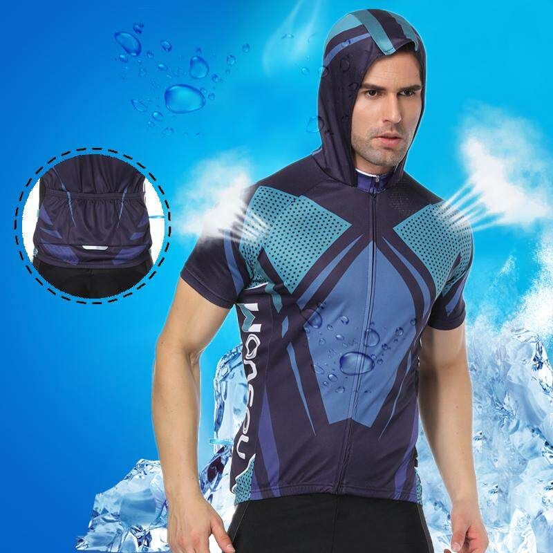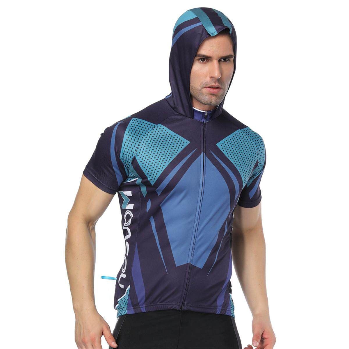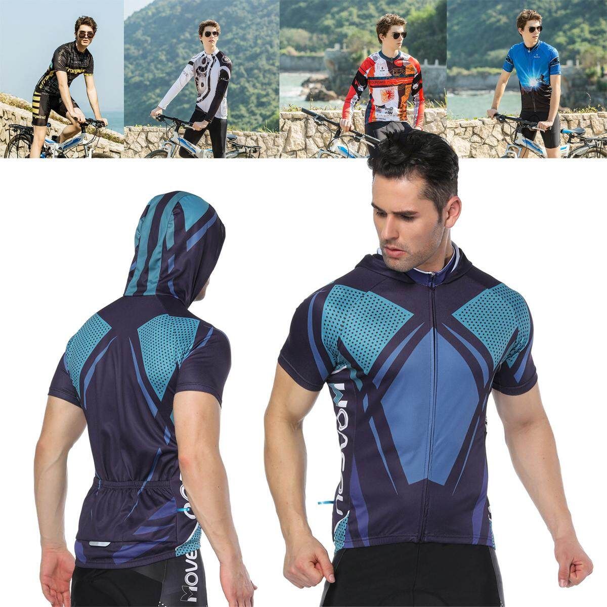 -Men‘s Cycling Clothing Bicycle Jersey Sportswear Short Sleeve Mtb Bike Top Shirt(with hood).