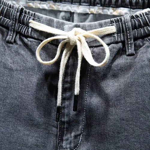 >>A weekend-perfect washed denim casual shorts with elastic waist and functional drawstring.