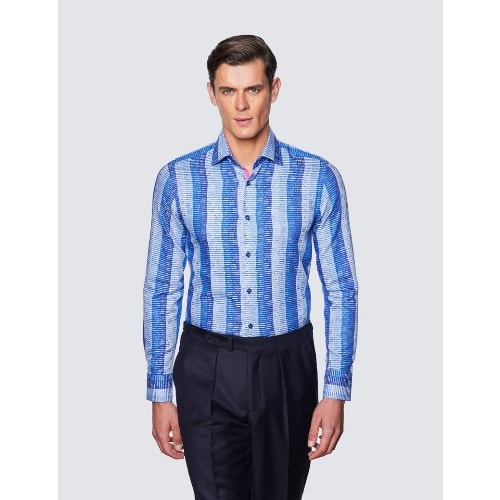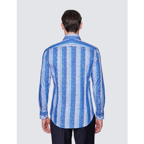 Buy Men's Dobby Stripe Slim Fit Cotton Shirt - Low Collar - Light & Dark Blue in Nigeria