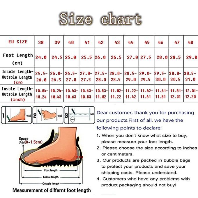 Note: 1.Please purchase the shoes according to the actual foot length.