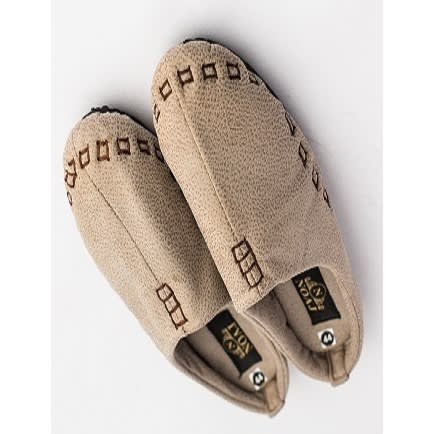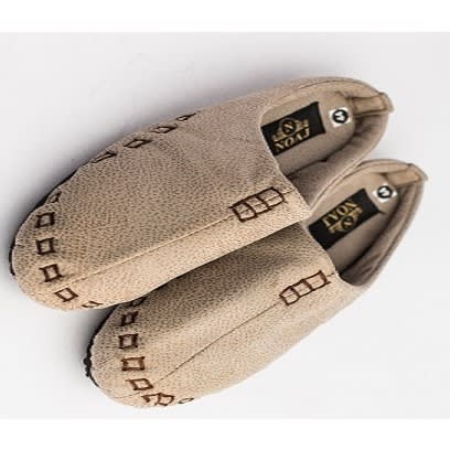 Men brown leather slip on shoe, brand jabal-polisico,brown color made in turkiye unique leather designs combination of animal skin size 44 color brown very light flat heel easy and light to move about unique design palm slide on shoe easy to move about combination of animal skin