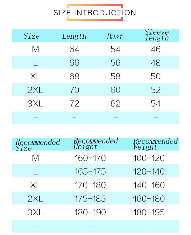 Dimensions: M, L, XL, 2XL, 3XL