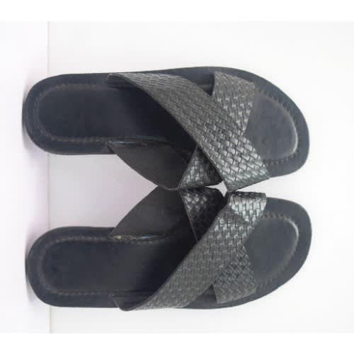 Buy Men's Fashionable Leather Cross Basket Pattern Pam Slippers-black in Nigeria
