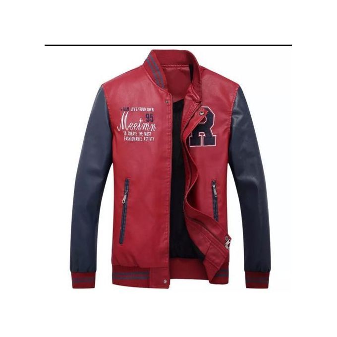 Buy Men's Faux Leather Jacket - Casual Weather Jacket - Red/Blue in Nigeria
