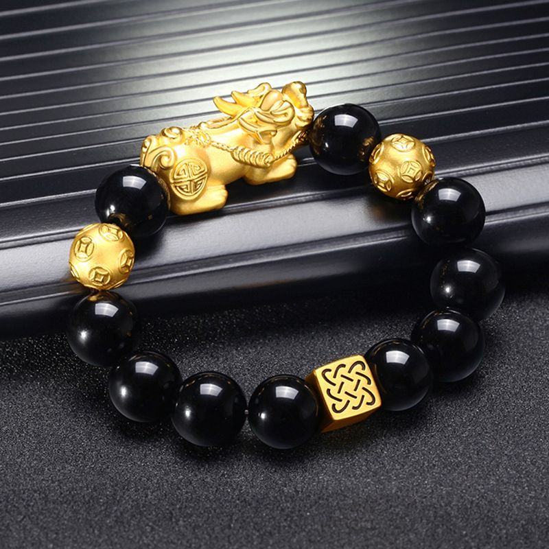 Description:Long long ago in ancient times, there is an animal called Pi Xiu. It is the ninth son of the Dragon King. Gold, Silver, and jewels are all its food. It has a dragon head, horse body, and wings. It is so powerful that it can shift bad luck to good. Later, people then regard it as a symbol of wealth and good luck. Whoever wearing the Pixiu bracelet will also be lucky.