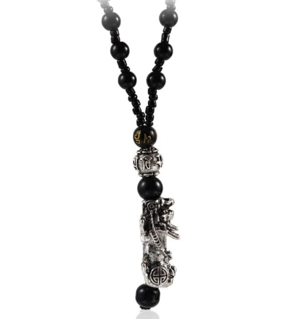 Mens Feng Shui Black Obsidian Wealth Necklace X1