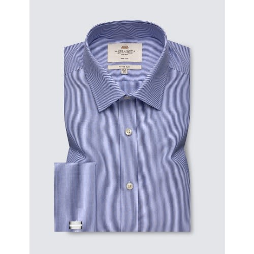 Buy Men's Formal Blue & White Fine Stripe Slim Fit Shirt - Double Cuff - Non Iron in Nigeria