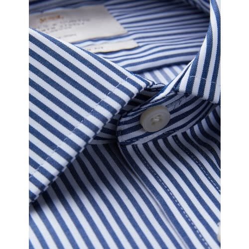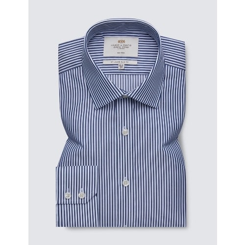 Buy Men's Formal Navy & White Bengal Stripe Slim Fit Shirt - Single Cuff - Non Iron in Nigeria