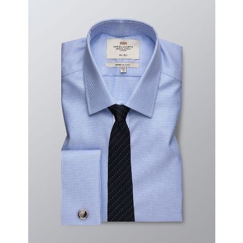 Buy Men's Formal Navy & White Fabric Interest Dobby Fitted Slim Shirt - Double Cuff in Nigeria