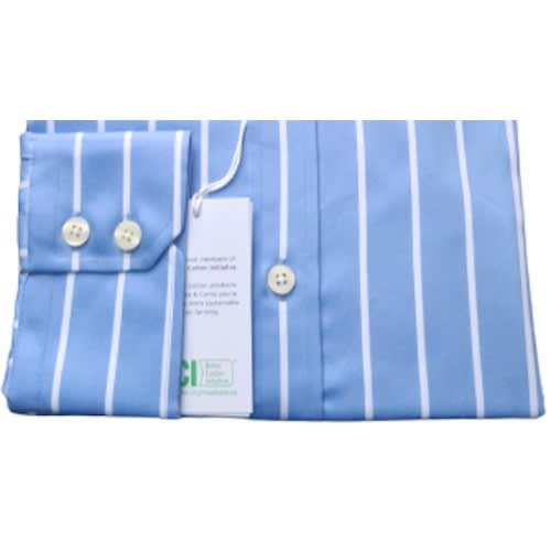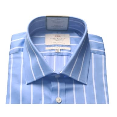 Buy Men's Formal Non Iron Blue & White Bold Stripe Slim Fit Shirt - Single Cuffs in Nigeria