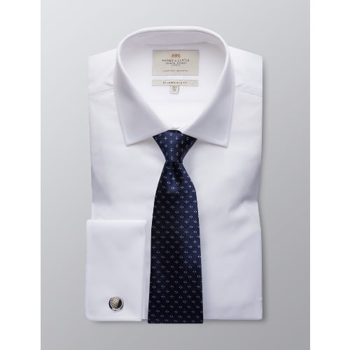 A sateen finished regular fit, single cuff shirt by Bellissimo. This easy care, wrinkle free shirt has been made for the Canadian market, it has a regular collar with housing for your collarbones and long sleeves with single cuffs with twin buttons & holes for cuff-links. The shirt is a regular fit with twin pleats at the back for a more generous comfortable fit.