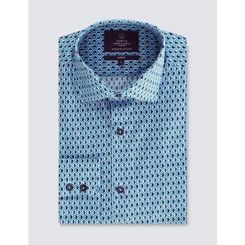 Buy Men's Geometric Print Relaxed Slim Fit Shirt – Single Cuffs - Blue & Navy in Nigeria