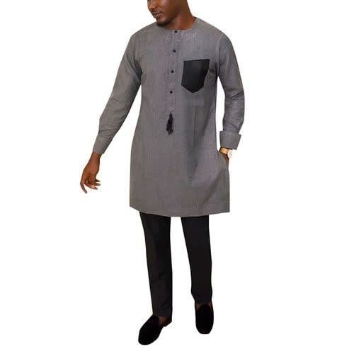 Buy Mens Grey Traditional Senator Attire in Nigeria