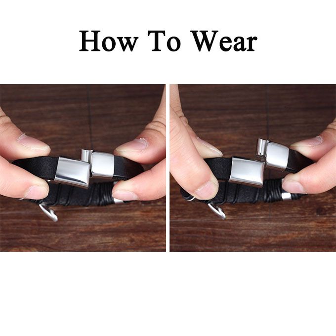 Genuine leather Bracelet Men Stainless Steel Leather Hand