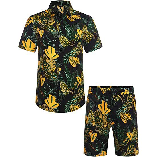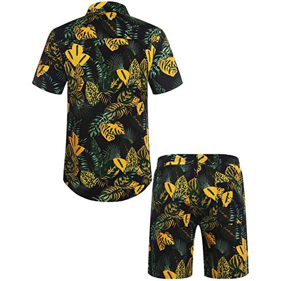 SUMMER CASUAL FLORAL SET--- Men's Hawaiian Shirt loose fit, button-down short sleeve, spread collar; Beach Shorts with slanted side pockets and rear pockets, elastic waist drawstring. Simple and classic matching of shirts and shorts suits, save you the time of choosing to match.