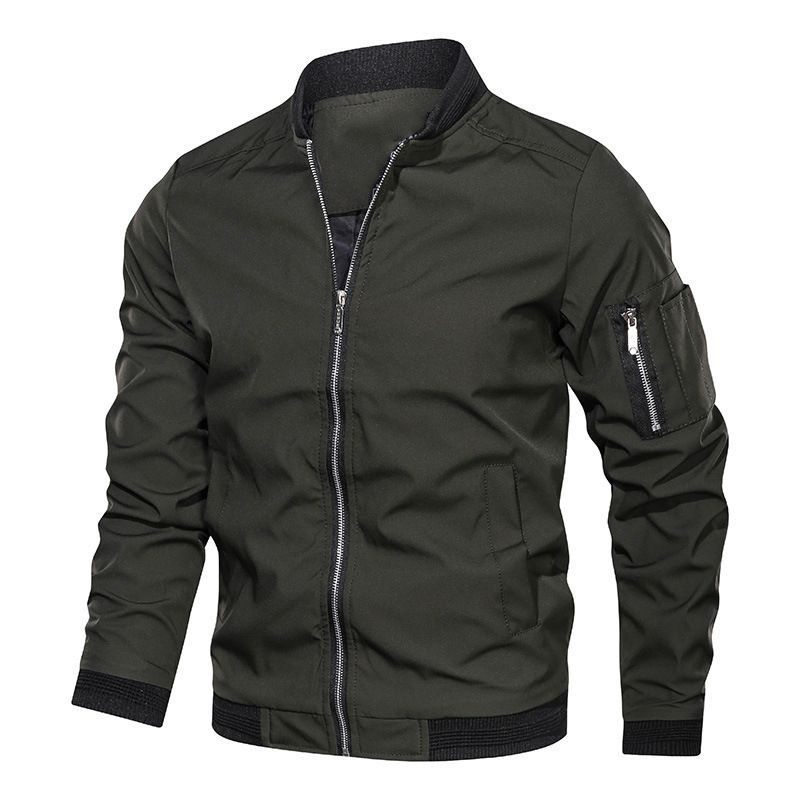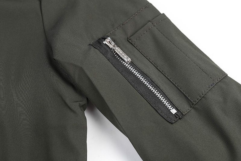 - Full zipper stand collar bomber jacket, The zipper head is on the left