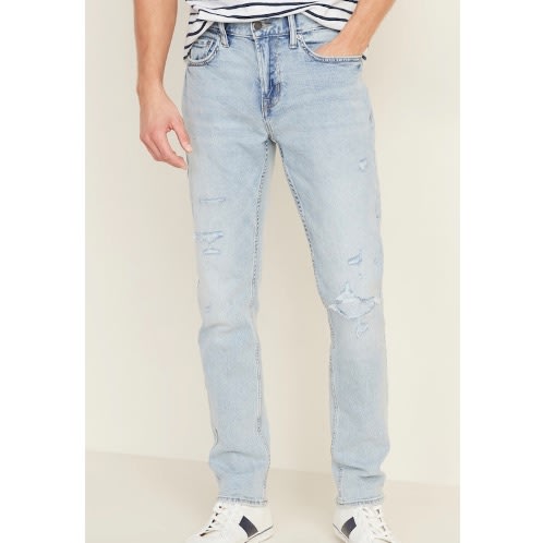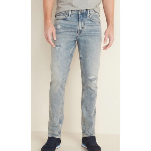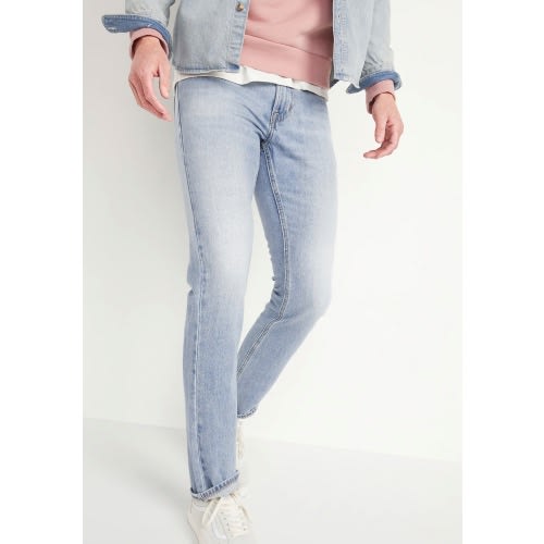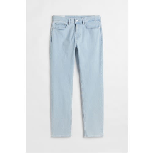 Straight-leg, 5-pocket jeans in cotton denim with gentle stretch for added comfort. Slim fit from waist through thighs. Regular waist and zip fly. Easily styled for a sleek or sporty look