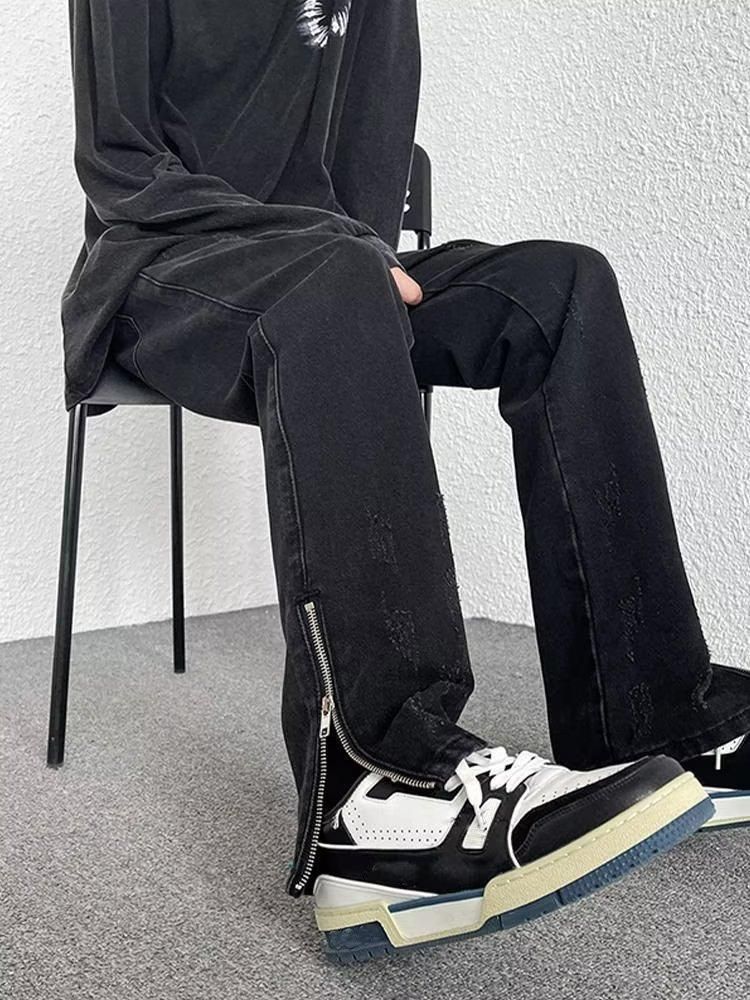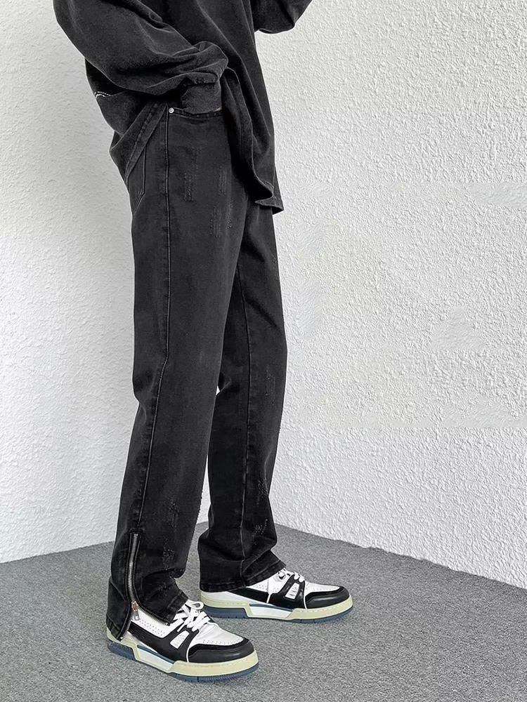 Buy Men's Jeans Zipper Slim Fit Straight Jeans Black in Nigeria