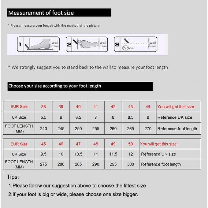 If your foot type is larger than ordinary, please select a size one step higher than your size. Refer to the attached size chart.