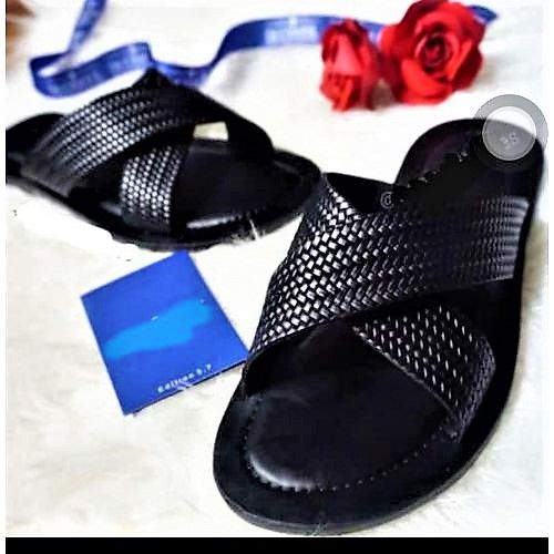 Men's Leather Cross Slippers - Black is made from quality black leather, the insole is made from soft fibre and synthetic which makes your feet feel well