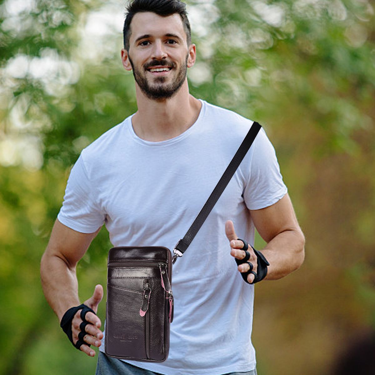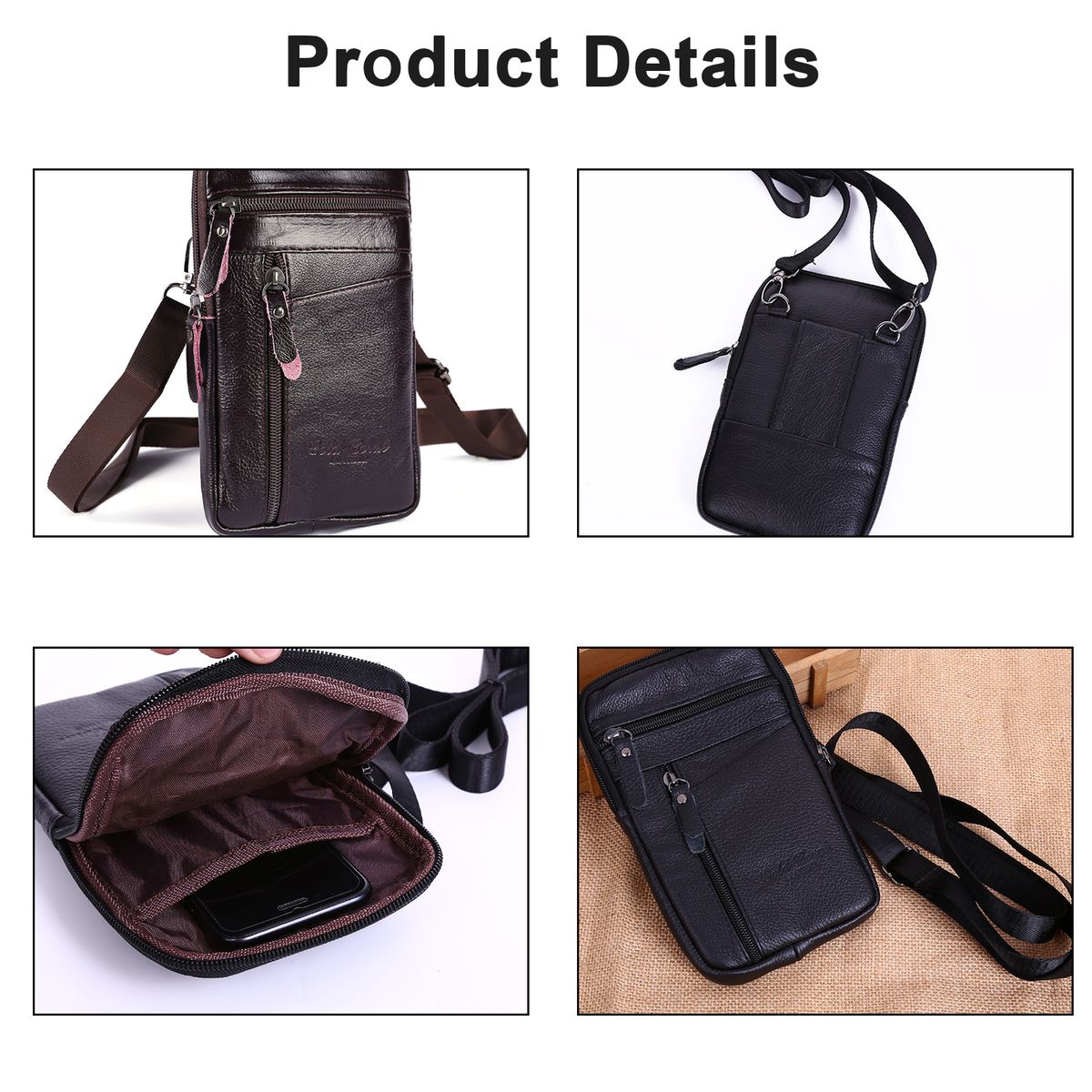1. High-Quality Material: Our men\'s mobile phone bag is made of high-quality leather material, so it is durable, waterproof, wear-resistant, and not easy to fade.