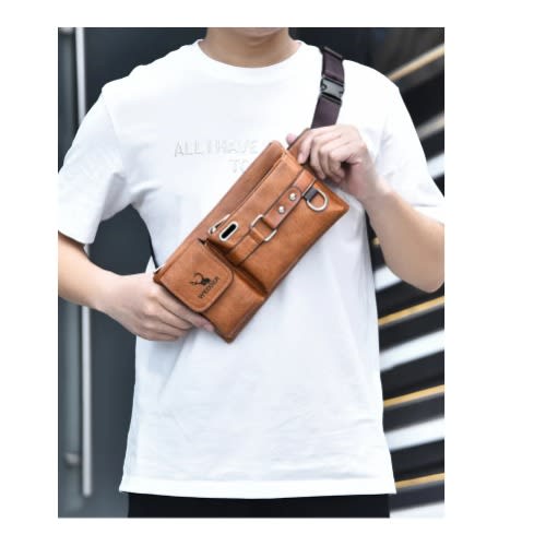 Buy Men's Leather Sling Bag Chest - Light Brown in Nigeria