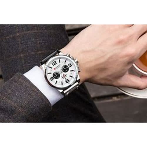 Buy Mens Leather Strap Watches - Chronograph Classic Casual Stainless Steel Case - Black in Nigeria