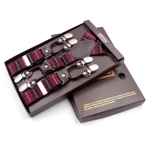 Buy Men's Leather Suspenders - Alloy 6 Clips - Striped Red in Nigeria