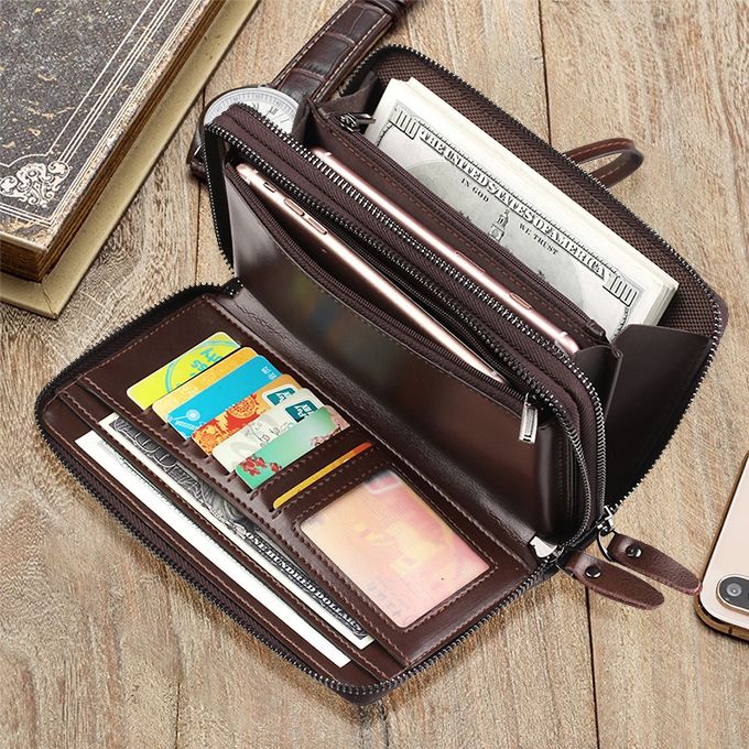 Multi-function and Large Capacity: 6 credit card slots, 2 cash compartments, 1 checkbook compartment, 1 ID window and 2 zipper pockets