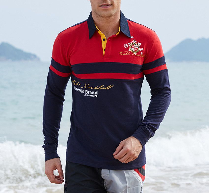 Buy Men's Long Sleeve Color Blocking Polo Shirt - Red/Navy in Nigeria
