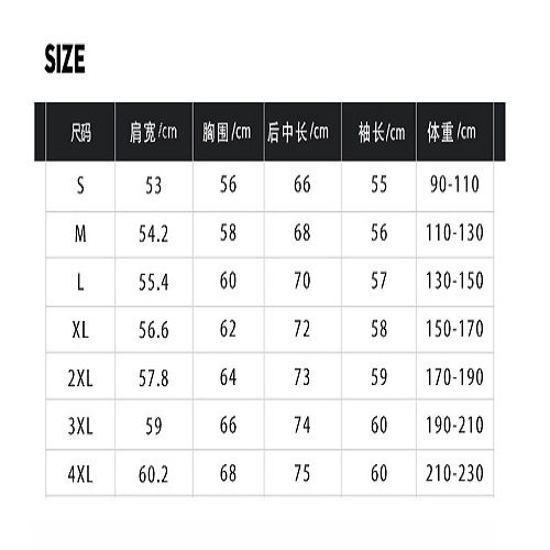 Sizes: EU Sizes S, M, L, XL, XXL, XXXL, XXXXL