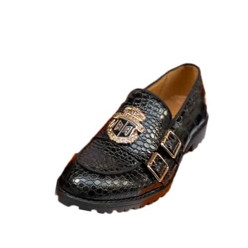 Buy Men's Monk Strap Croc Leather Loafers Shoe : Black in Nigeria