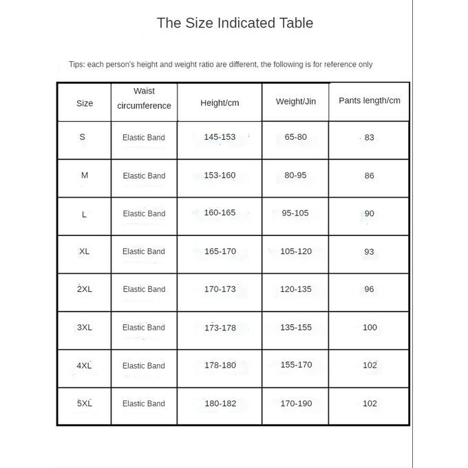 Reminder: If you like loose or long pants, it is recommended to choose one size larger, the above suggestions are for reference only, thank you!