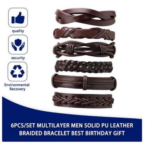 Buy Men's Multilayer PU Leather Braided Bracelet - 6 Pieces in Nigeria