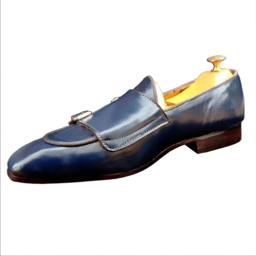 Buy Men's Navy Blue Double Monk Strap Belgian Loafers in Nigeria