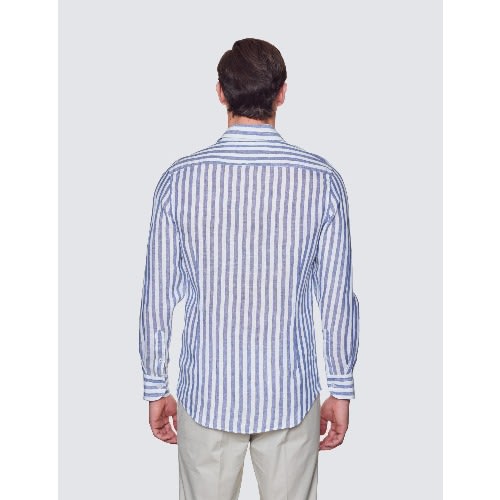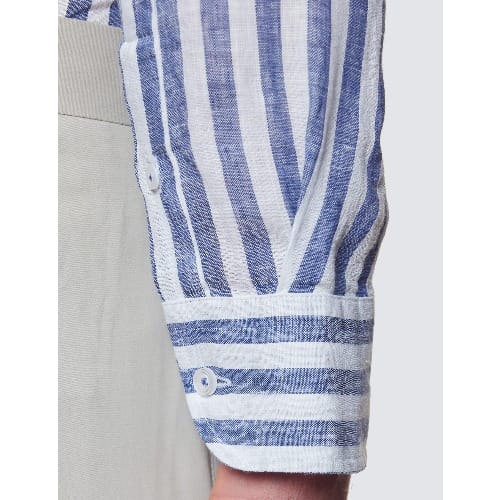 Buy Men’s Navy & White Collarless Stripe Linen Relaxed Slim Fit Shirt in Nigeria