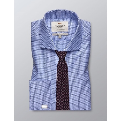 Buy Men's Navy & White Dogstooth Check Slim Fit Shirt - Double Cuff in Nigeria