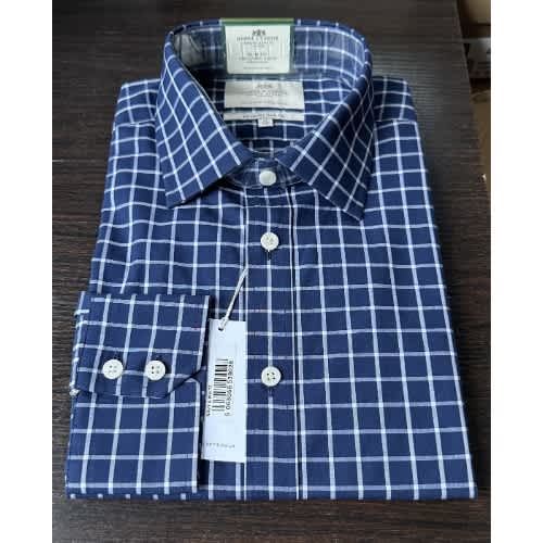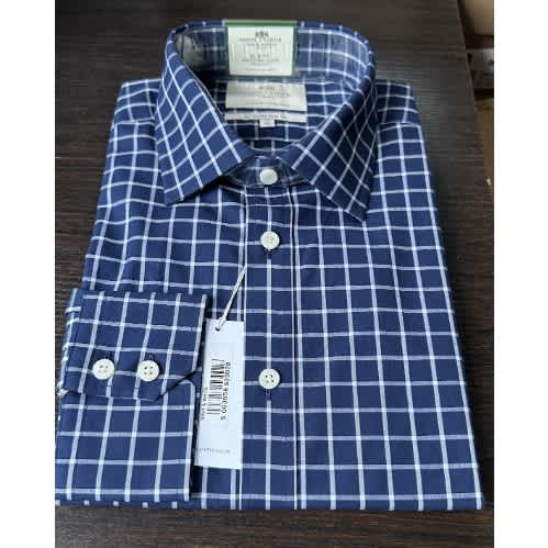 Buy Men's Navy & White Grid Check Slim Fit Shirt - Single Cuff in Nigeria