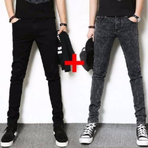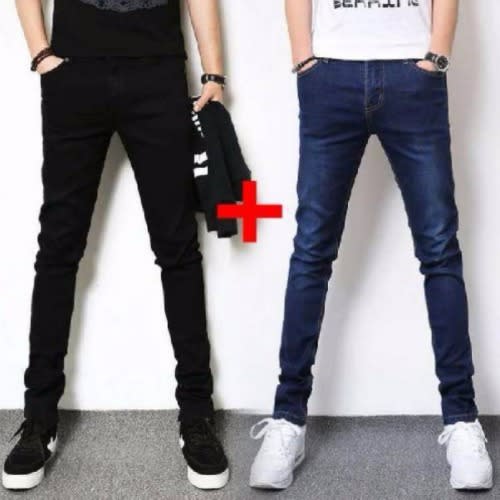 Buy Men's Non Faded Stock Pencil Jeans - 3 In 1 - Ash - Plain Black And Blue in Nigeria