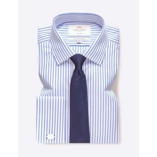 Buy Men's Non-iron Blue & White Stripe Slim Shirt - Double Cuff in Nigeria