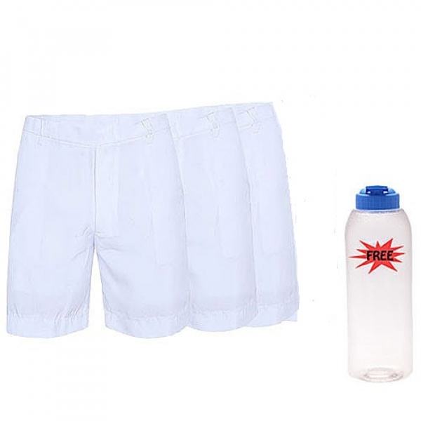This is a set of 3 plain bermuda white shorts that are tailor fitted and designed for Sporting activities, and leisure too. They are made from a fine material that has a tiny bit of elasticity. They are designed to stand out in attractiveness.