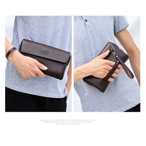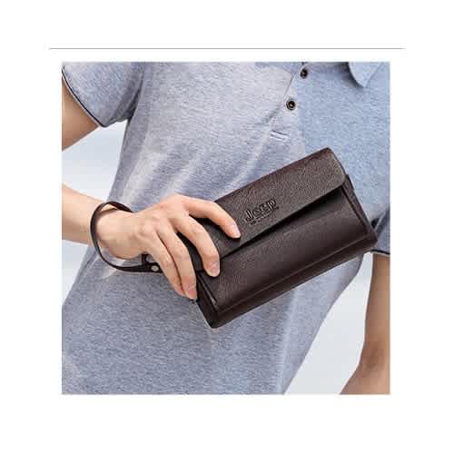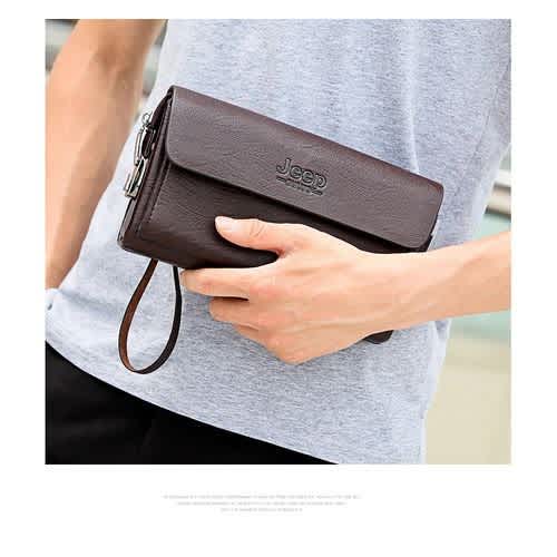 Buy Men's Original Leather Clutch Purse - Anti-theft Zipper Leather Wallet With Pen Holder in Nigeria